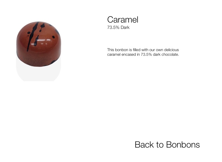 This bonbon is filled with our own delicious caramel encased in 73.5% dark chocolate.