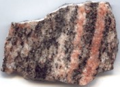 Foliated Metamorphic rocks form through melting, heat, and pressure beneath the earths surface and the mineral grains are arranged in planes,bands,or layers. EXAMPLE: Gneiss