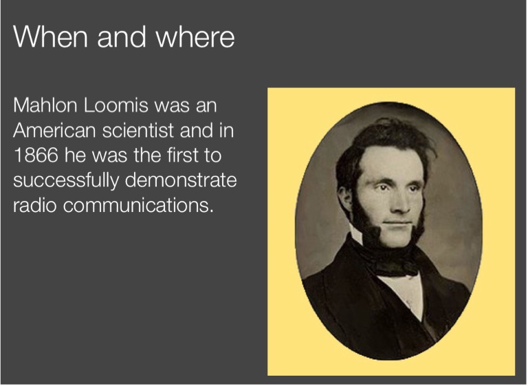 Mahlon Loomis was an American scientist and in 1866 he was the first to successfully demonstrate radio communications.