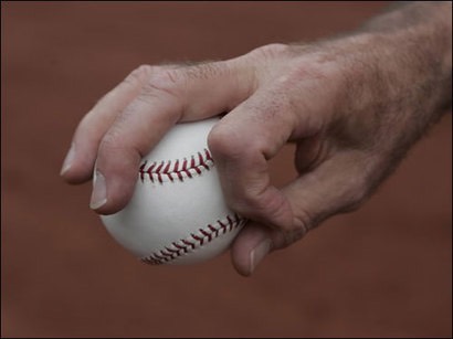 To throw a change-up hold your two fingers on the seam like a fastball. Have your ring finger in a circle position on the side of the ball. When throwing the ball have your ring finger in the circle parallel to the ground.