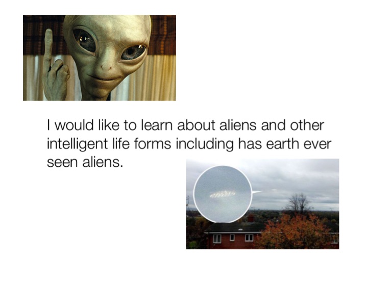 I would like to learn about aliens and other intelligent life forms including has earth ever seen aliens.