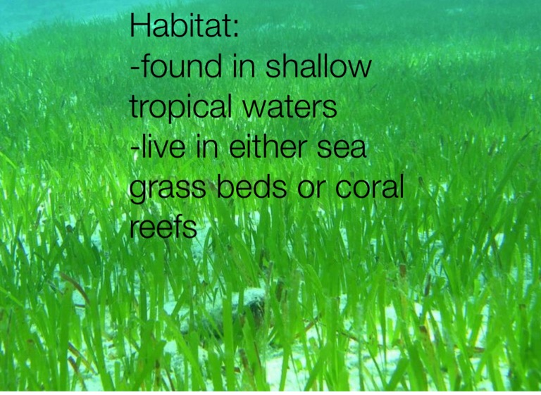 -live in either sea grass beds or coral reefs