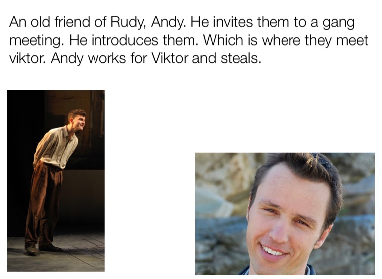 An old friend of Rudy, Andy. He invites them to a gang meeting. He introduces them. Which is where they meet viktor. Andy works for Viktor and steals.