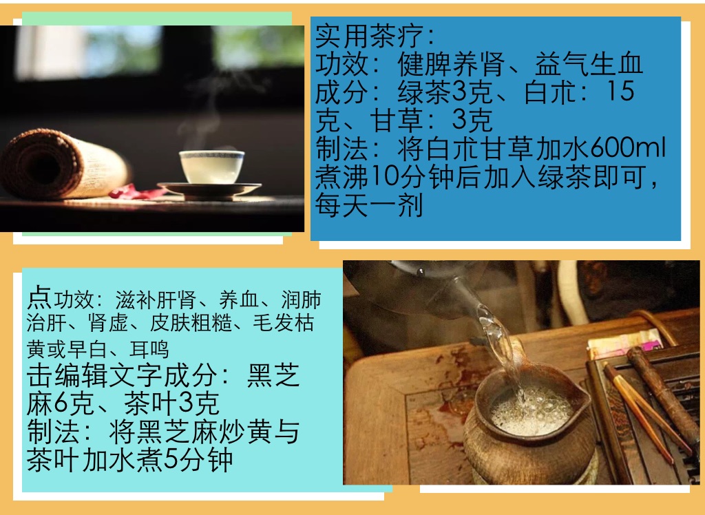 击编辑文字成分:黑芝麻6克、茶叶3克