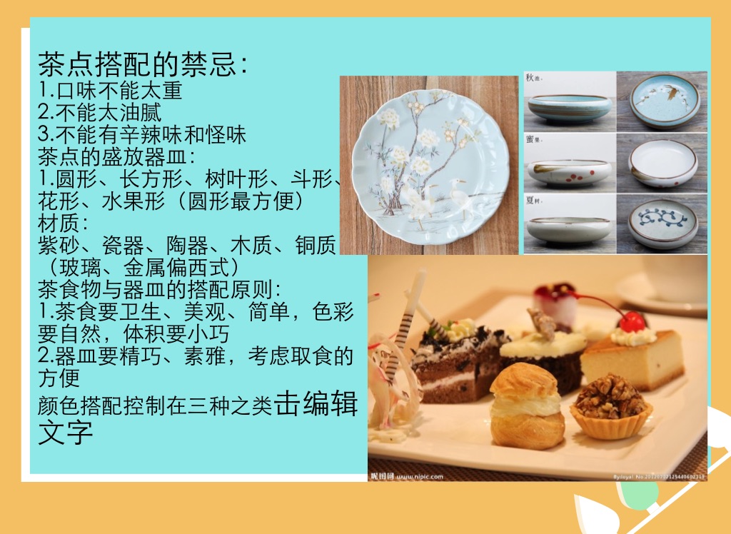 1.茶食要卫生、美观、简单,色彩要自然,体积要小巧