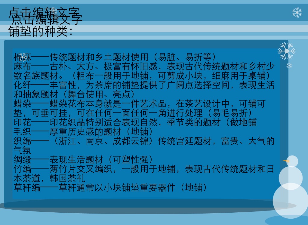 化纤——丰富性,为茶席的铺垫提供了广阔点选择空间,表现生活和抽象题材(舞台使用、亮点)