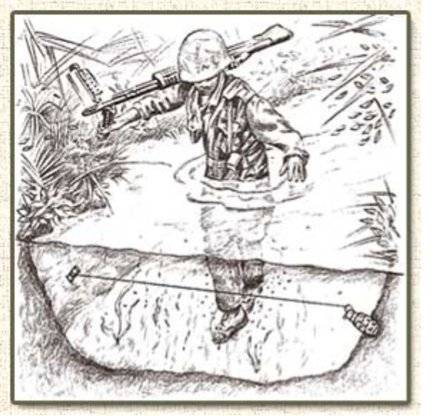 What they did was they would put a grenade in one side of the creek and attach trip wire to the pin that way when some one would walk by the would also pull the wire with them as well as the pin and enable the grenade.