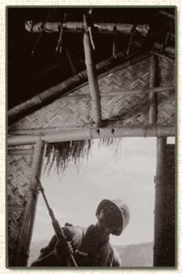 This trap consist of sharpened sticks attached to a plank and set above a door with tripwire attached to it. When the victim walks near it, it will step on the tripwire located near the front of the door and set the trap off making the plank of wood fall down on him staving the sharpened sticks threw the victims body.