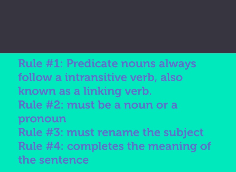 Rule #1: Predicate nouns always follow a intransitive verb, also known as a linking verb.