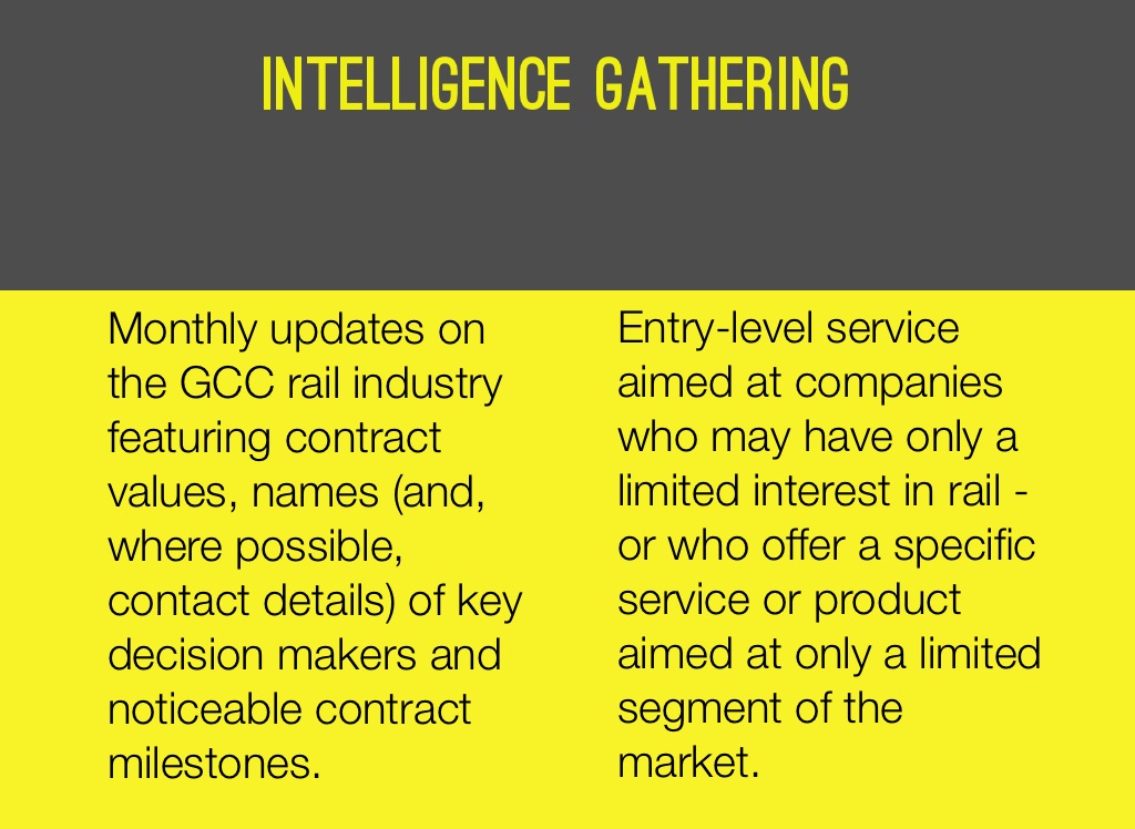 Monthly updates on the GCC rail industry featuring contract values, names (and, where possible, contact details) of key decision makers and noticeable contract milestones.