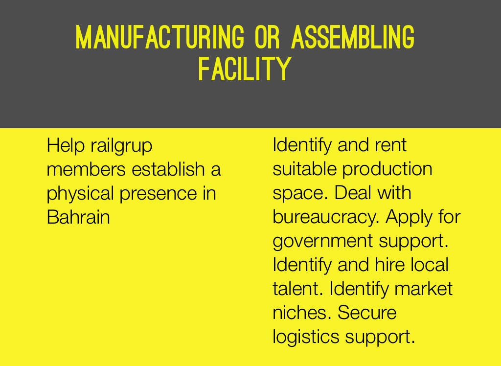 Help railgrup members establish a physical presence in Bahrain