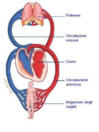 è quella che collega il cuore a tutti i tessuti del corpo. I vasi diramandosi verso la periferia dell’organismo diventano capillari e permettendo lo scambio con le cellule che ricevono l’ossigeno e cedono l’anidride carbonica. Il sangue che va verso le cellule è carico di ossigeno mentre quello che ritorna verso il cuore è carico di anidride carbonica.
