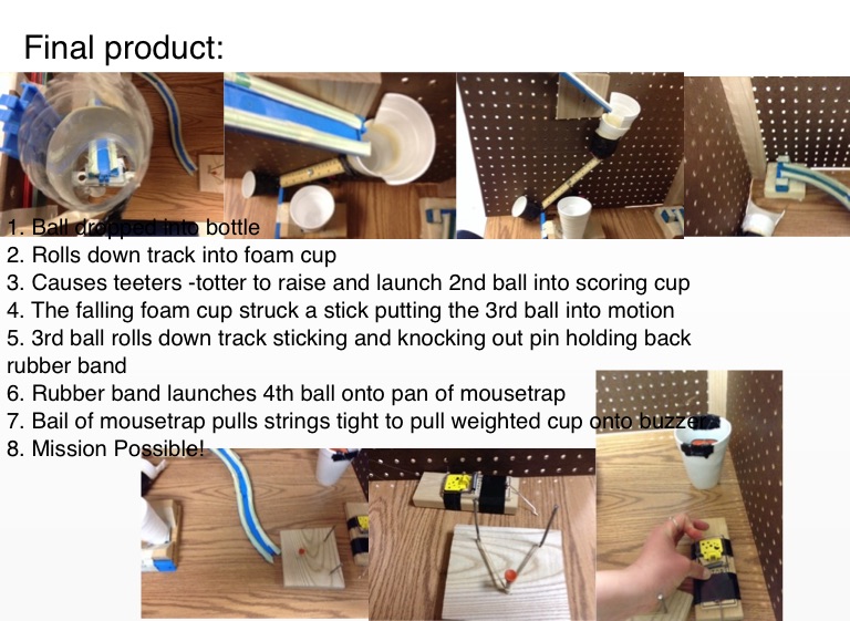 6. Rubber band launches 4th ball onto pan of mousetrap