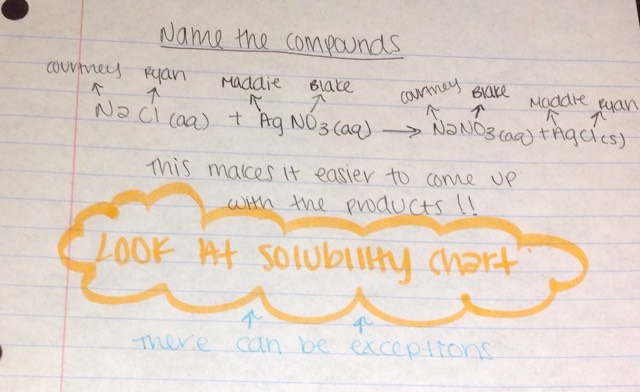 A. Formation of a precipitate- If a product is not soluble (use the solubility chart), it is a precipitate