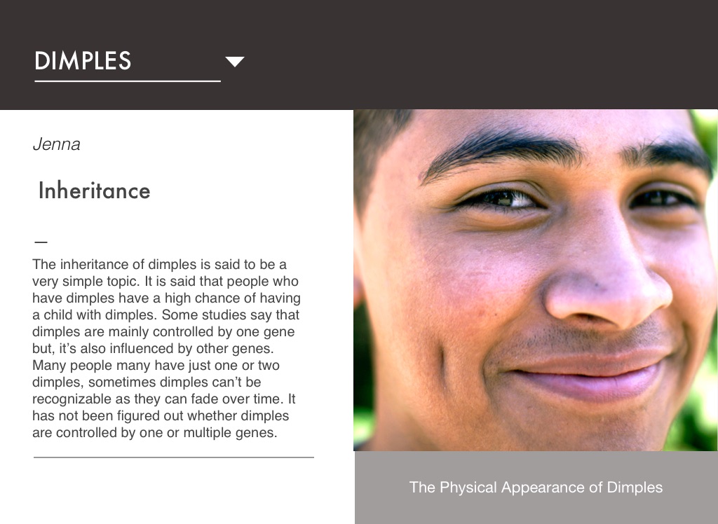The inheritance of dimples is said to be a very simple topic. It is said that people who have dimples have a high chance of having a child with dimples. Some studies say that dimples are mainly controlled by one gene but, it’s also influenced by other genes. Many people many have just one or two dimples, sometimes dimples can’t be recognizable as they can fade over time. It has not been figured out whether dimples are controlled by one or multiple genes.