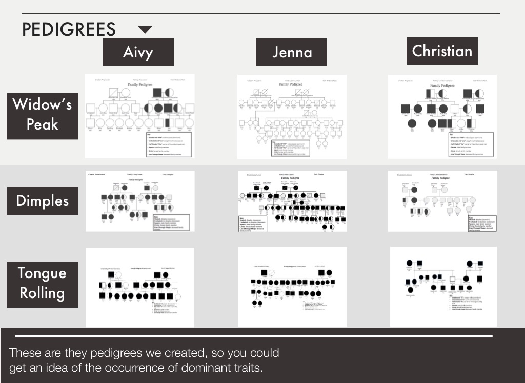 These are they pedigrees we created, so you could get an idea of the occurrence of dominant traits.