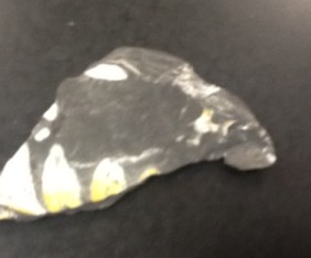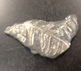 This specimen fells rugged, hard, smooth on the back. It looks like a plant maybe some part of a pine tree. It is a triangle. The size is small. The luster is brilliant. carbon film.