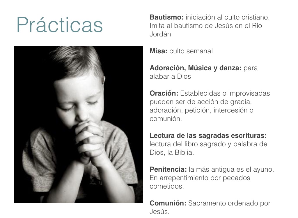 Oración: Establecidas o improvisadas pueden ser de acción de gracia, adoración, petición, intercesión o comunión.