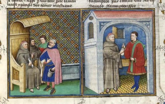 Nonostante le offese arrecate ai privati e all'autorità giudiziaria, fu trattato con riguardo in quanto era protetto da Musciatto, il quale conosciuta la fama gli offre di badare agli affari, ovvero riscuotere i crediti e avere una percentuale su questi. Ser Ciappelletto disoccupato e in precarie condizioni economiche, desideroso di appoggio e di riparo, accettò l'incarico e ricevuta la procura e la lettera favorevoli del re inizia il lavoro.q