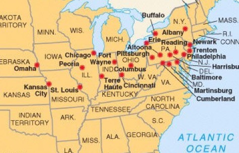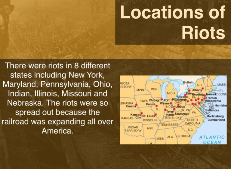 There were riots in 8 different states including New York, Maryland, Pennsylvania, Ohio, Indian, Illinois, Missouri and Nebraska. The riots were so spread out because the railroad was expanding all over America.