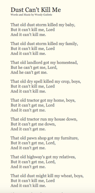 “Dust Can’t Kill Me” by: Woody Guthrie