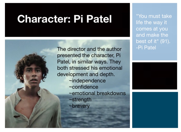 The director and the author presented the character, Pi Patel, in similar ways. They both stressed his emotional development and depth.