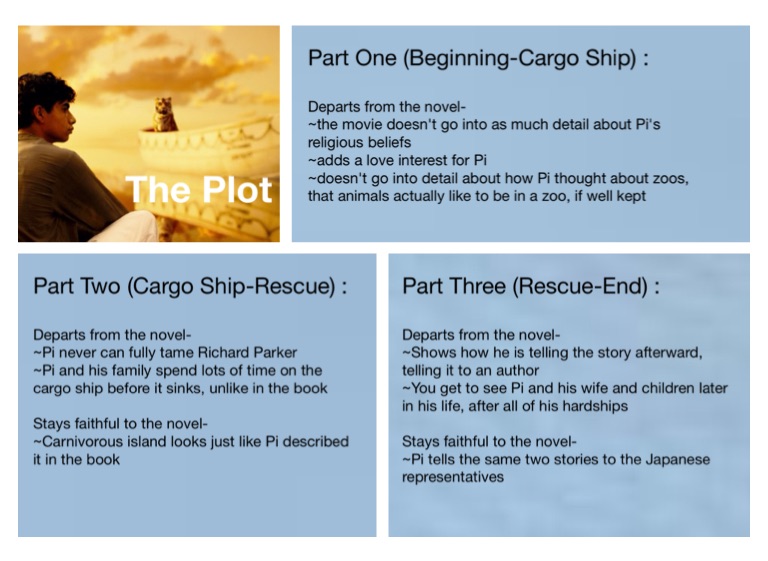 ~Pi and his family spend lots of time on the cargo ship before it sinks, unlike in the book