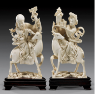Jade, porcelana, piedra, marfil , seda y otras telas.