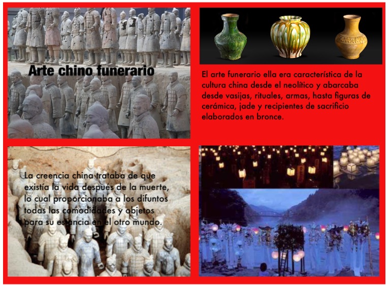 La creencia china trataba de que existía la vida después de la muerte, lo cual proporcionaba a los difuntos todas las comodidades y objetos para su estancia en el otro mundo.