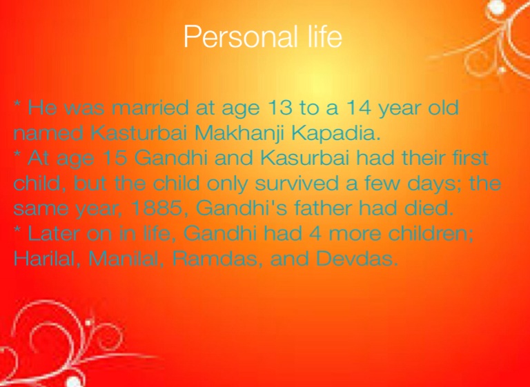 * Later on in life, Gandhi had 4 more children; Harilal, Manilal, Ramdas, and Devdas.