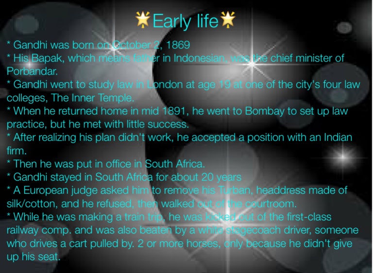 * Gandhi was born on October 2, 1869