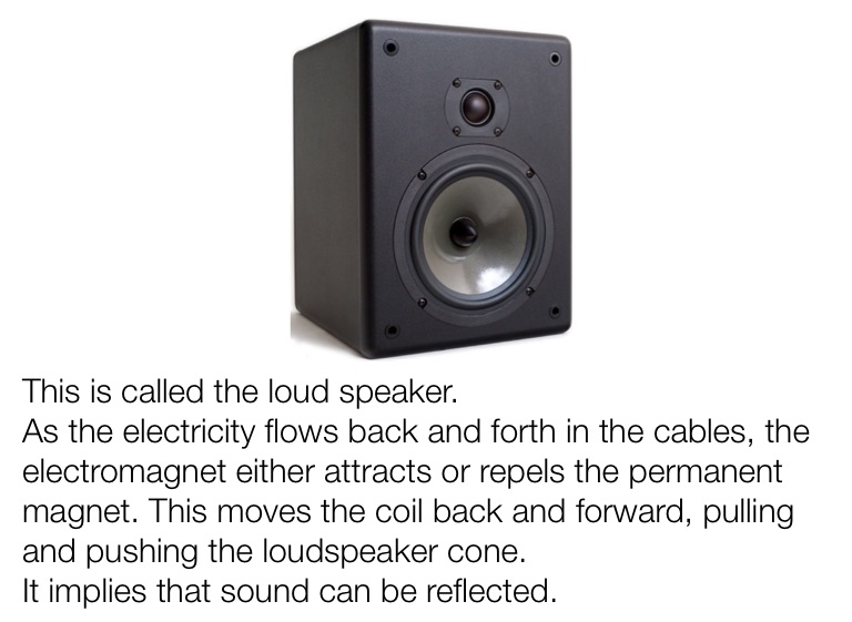 As the electricity flows back and forth in the cables, the electromagnet either attracts or repels the permanent magnet. This moves the coil back and forward, pulling and pushing the loudspeaker cone.