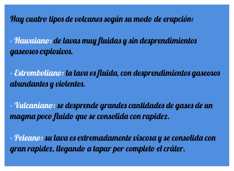Hay cuatro tipos de volcanes según su modo de erupción: