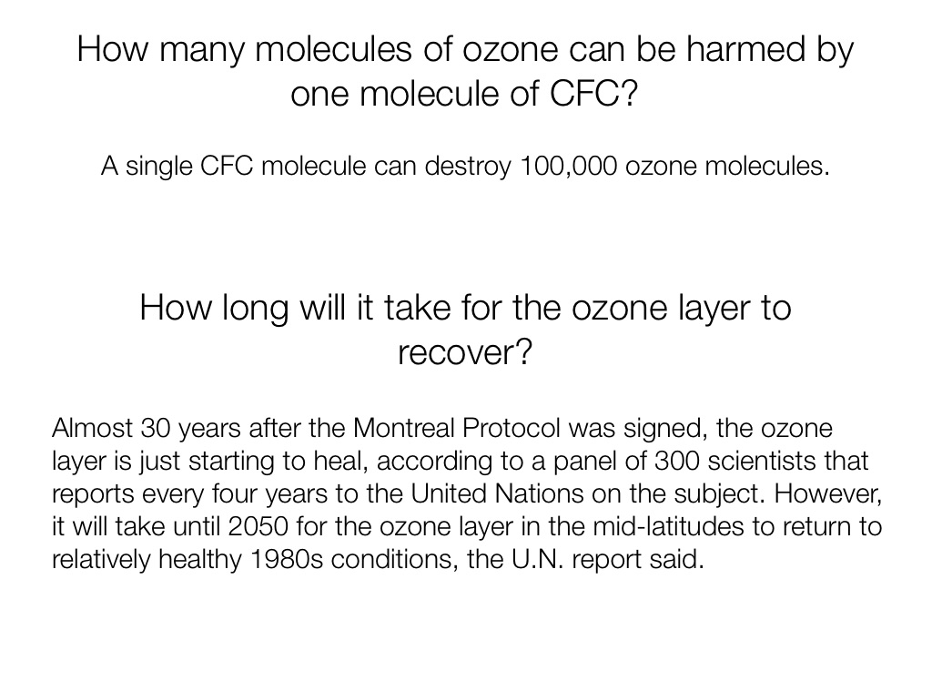 A single CFC molecule can destroy 100,000 ozone molecules.
