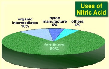 a corrosive liquid inorganic acid HNO3 used especially as an oxidizing agent, in nitrations, and in making organic compounds (as fertilizers, explosives, and dyes)