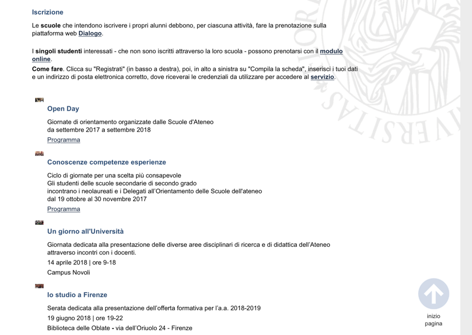 Date degli Open day previsti nell'Ateneo di Firenze