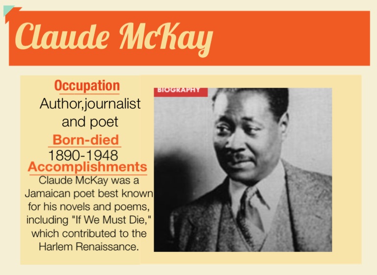 Claude McKay was a Jamaican poet best known for his novels and poems, including "If We Must Die," which contributed to the Harlem Renaissance.