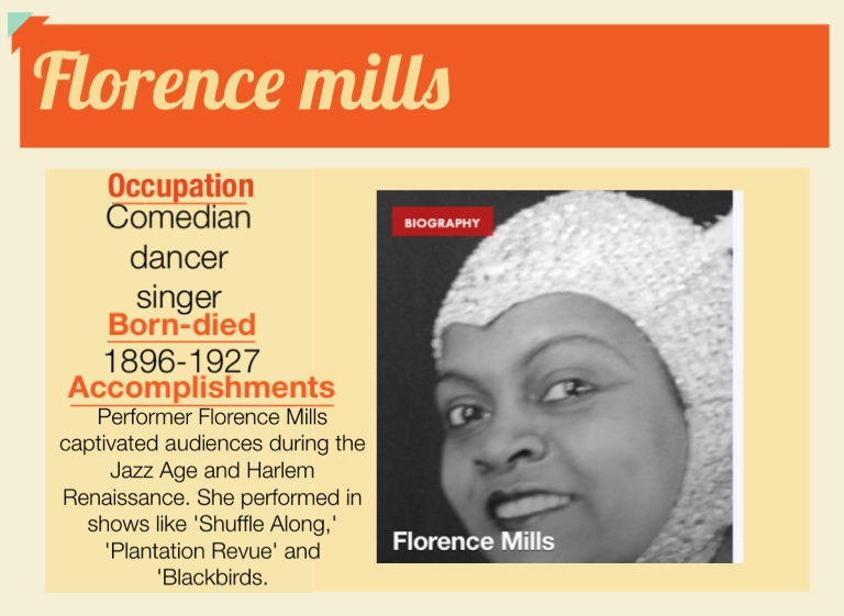 Performer Florence Mills captivated audiences during the Jazz Age and Harlem Renaissance. She performed in shows like 'Shuffle Along,' 'Plantation Revue' and 'Blackbirds.