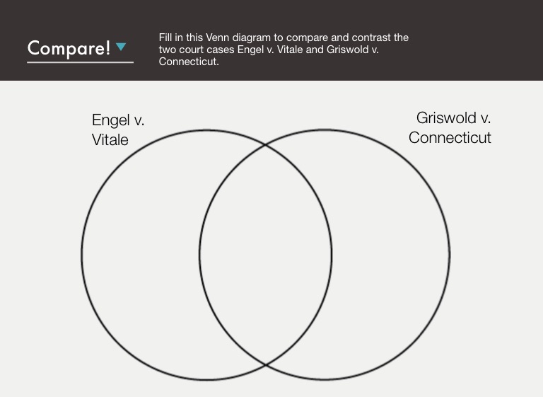 Fill in this Venn diagram to compare and contrast the two court cases Engel v. Vitale and Griswold v. Connecticut.