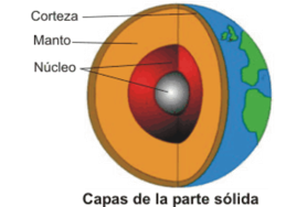 El núcleo es la capa más interna y se divide en dos zonas: núcleo externo y núcleo interno.