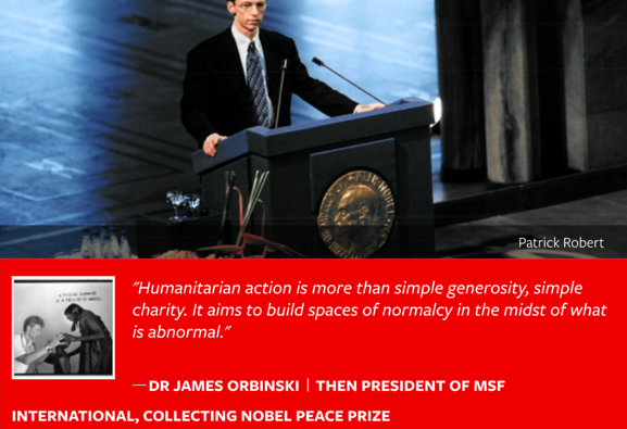Doctors Without Borders believes all people have the right to medical care, regardless of their gender, race, religion, creed, or political affiliation, and their needs outweigh national borders. They received the Nobel Peace Prize in 1999 for their medical humanitarian work.
