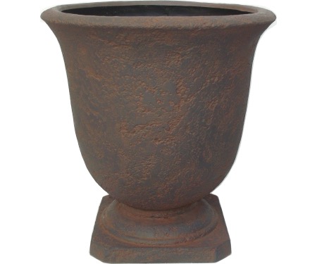 This fiberglass Belle Urn is made from 10% stone, 50% resin, and 40% fiberglass and features a hand-applied finish for a beautiful, natural appearance. 18" diameter x 17" H. Weather, impact and UV resistant. Comes with a drainage plug for indoor use that is removable for outdoor use.