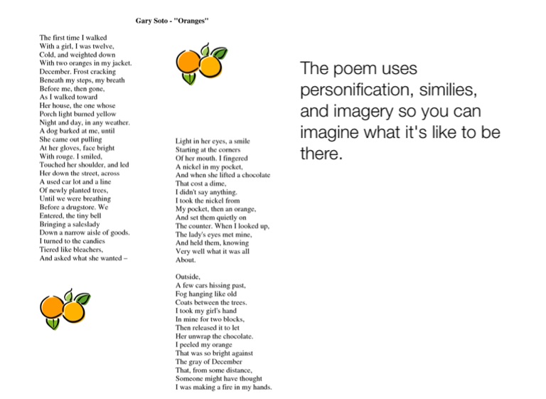 The poem uses personification, similies, and imagery so you can imagine what it's like to be there.
