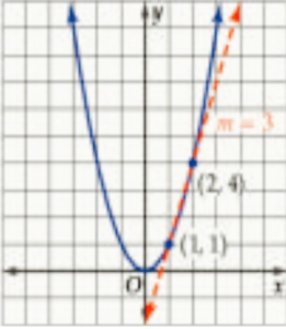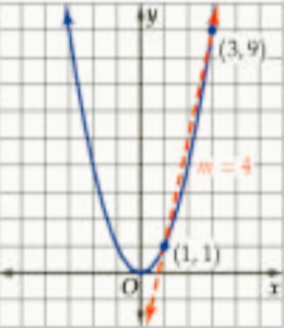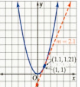 تعلمت سابقاً ان معدل تغير منحنى دالة غير خطية يتغير من نقطه الى أخرى عليه، ويمكن حساب متوسط معدل تغير الدالة غير الخطية على فترة باستعمال ميل القاطع. ففي التمثيلات البيانيه ادناه للداله y=x^2 والقاطع الذي يقطعه ماراً بالنقطه (1,1) و بنقطه اخرى مثل (3,9) او (2,4) او (1.1,1.21) ،تجد ان القاطع يتخذ اوضاعاً مختلفه يتغير خلالها ميله