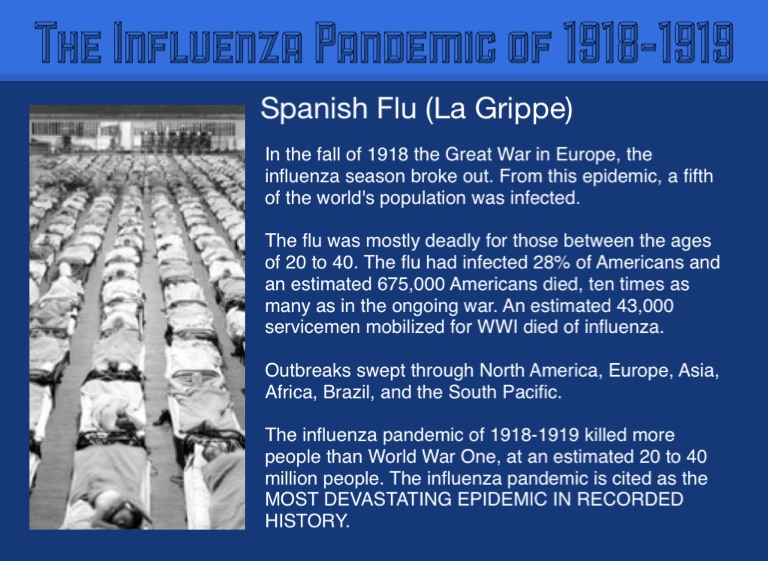 In the fall of 1918 the Great War in Europe, the influenza season broke out. From this epidemic, a fifth of the world's population was infected.