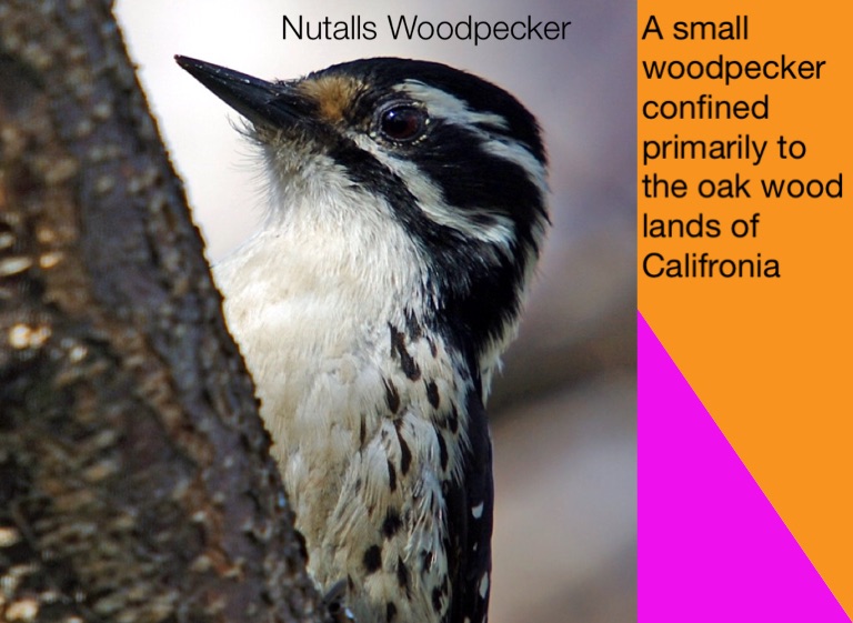 A small woodpecker confined primarily to the oak wood lands of Califronia