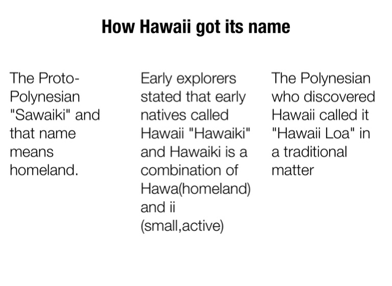 Early explorers stated that early natives called Hawaii "Hawaiki" and Hawaiki is a combination of Hawa(homeland) and ii