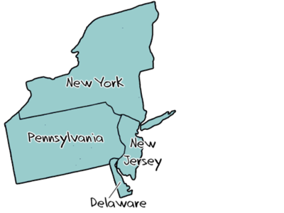 The Middle Colonies consisted of New York, Pennsylvania, New Jersey, and Delaware.