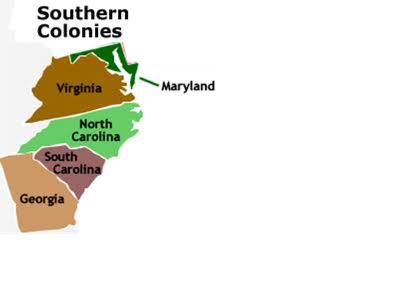 The Southern Colonies consisted of Maryland, Virginia, North Carolina, South Carolina, and Georgia.