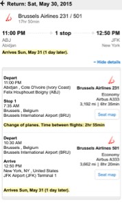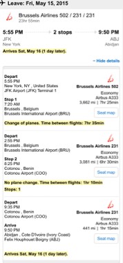 L'arrivé: 21h50 (un jour plus tard) à Abidjan, côte d'ivoire.